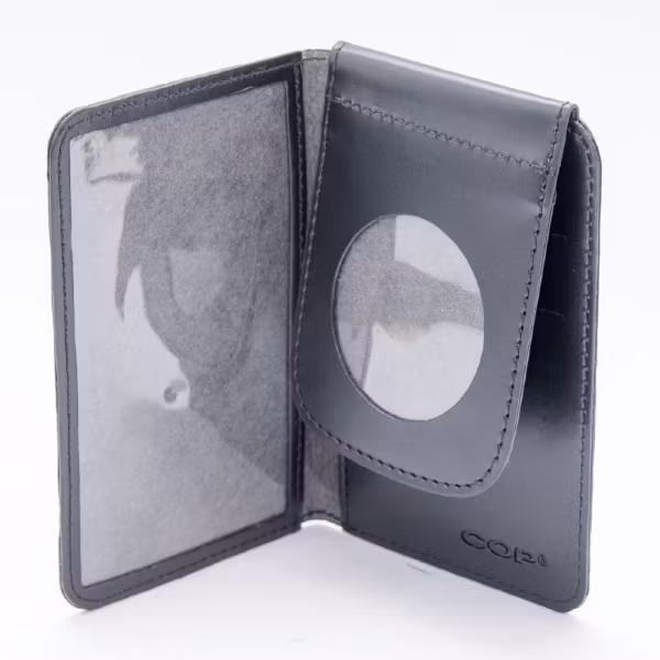 Holds badge and 3 bank cards