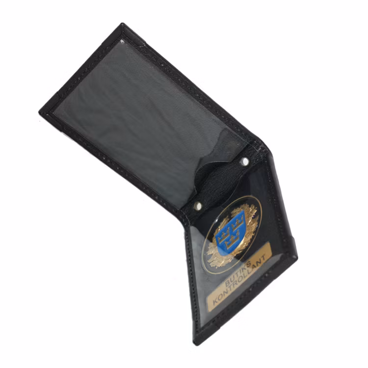 Ett specialtillverkat ID-fodral med bricka för att skydda tjänstekort, förordnande eller körkort. Fodralet är tillverkat av de bästa material som går att uppbringa på den internationella marknaden. Precis som med polisens senaste modell av ID-fodral går detta fodral att hänga i en kulkedja (diameter 3,7 mm) eller liknande runt halsen. Två öljetter är monterade för detta ändamål, kedja ingår dock inte. I facket som är anpassat till tjänstekort passar alla ID-kort och liknande som har samma storlek (54 x 86 mm) som ett körkort.
