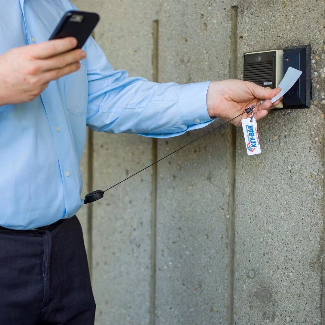 The housing is crafted from impact-resistant polycarbonate. Inside, a spool holds a 60 cm Kevlar cord noted for high stretch and abrasion resistance. The construction carries up to six keys or other items weighing up to 112 g. The retracting mechanism operates smoothly and quietly for user comfort.