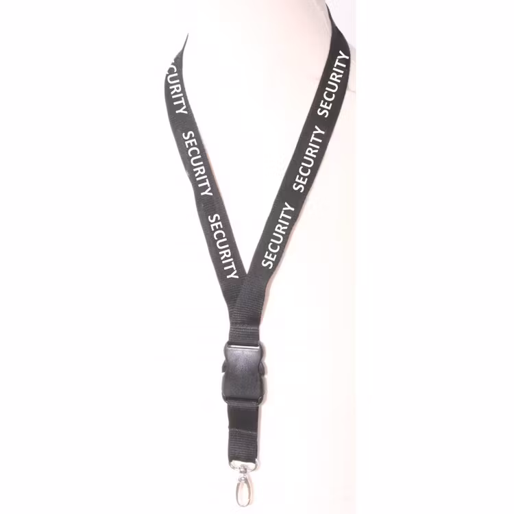 Extra brett och säkert nyckelband i nylon med metallkrok. Perfekt för att fästa nycklar, ID-kort, VIP passage etc. Spännet förhindrar skador eftersom det öppnas när man drar lite hårdare i bandet. Populär bland dörrvakter, entrèvärdar, festivalvakter m. fl.