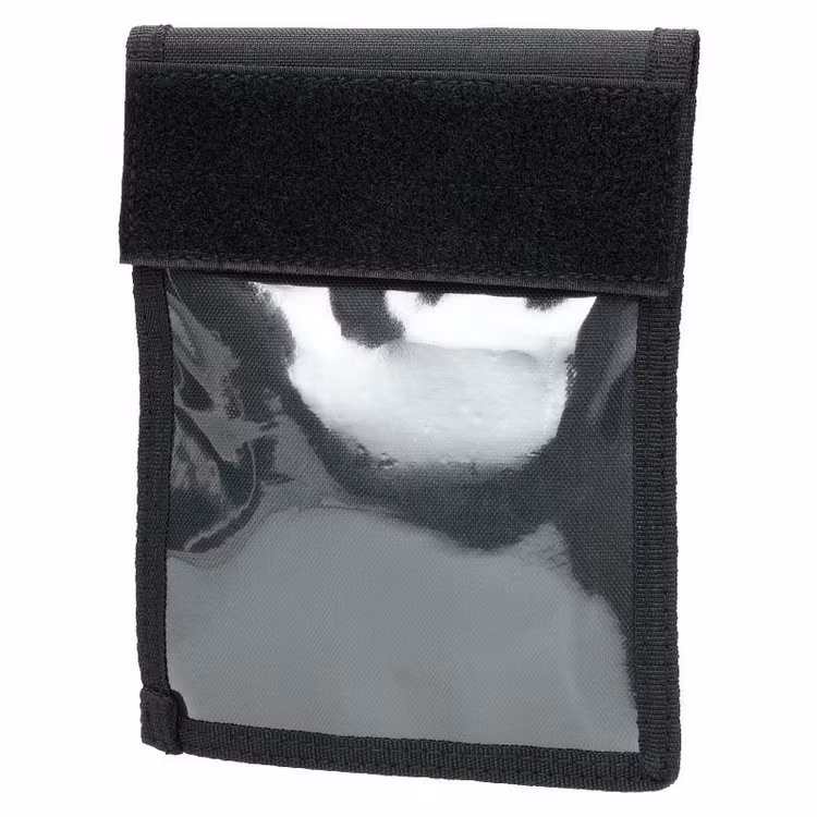 2 fronts secured by a common closure in the form of a hook and loop strap - the outer pocket is a transparent vinyl panel that makes the front pocket perfect for storing identification documents.