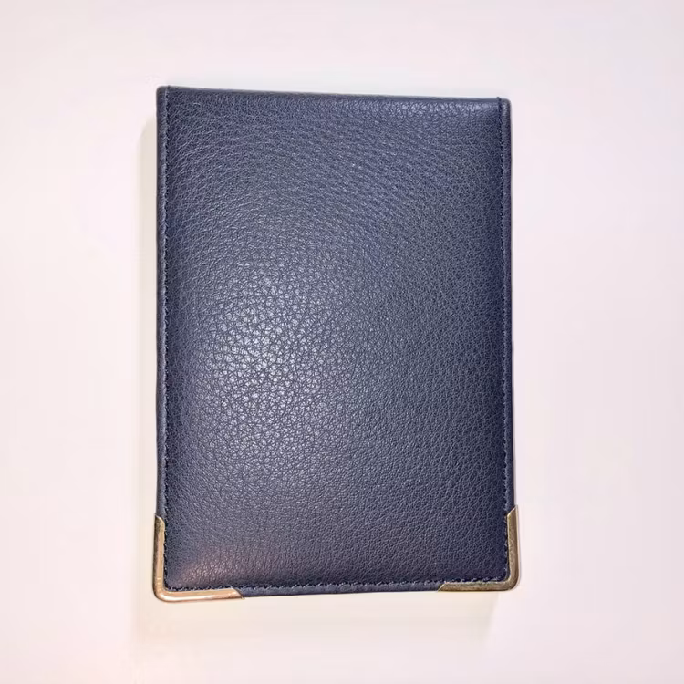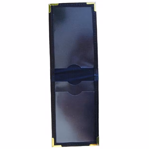 Polis ID fodral i svart skinn med 3 fickor i kreditkortsformat med hörn i mässing.