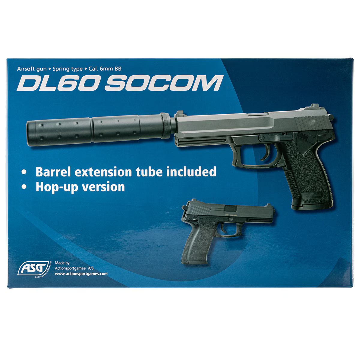 Spring-loaded replica of the DL60 pistol with a removable suppressor. The pistol is equipped with a Weaver accessory rail for mounting tactical accoutrements (laser sight or flashlight).