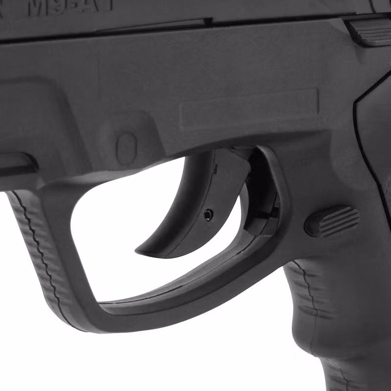 Licensed replica pistol M9-A1 originally manufactured by Steyr Mannlicher from Austria. The replica is made of durable polymer. It is powered by CO2 gas from a 12-gram cartridge, which generates a high initial velocity of 465 FPS, making it one of the most powerful replicas of short firearms available on the market. It features a factory set Hop-Up system that requires no adjustment. The pistol shoots 6 mm caliber BBs.