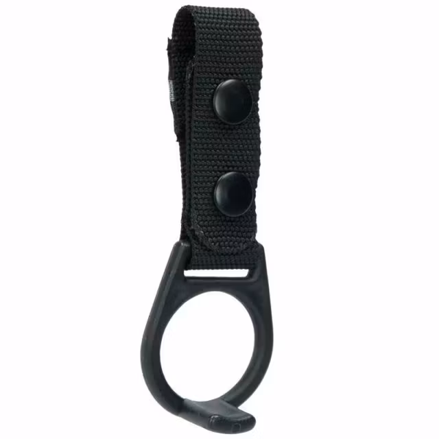 Hållaren har en diameter på 36 mm och fästs i bältet med två tryckknappar.