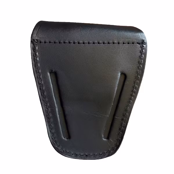Kraftigt fängselfodral av omtyckt modell i läder med lock som låses med tryckknapp.