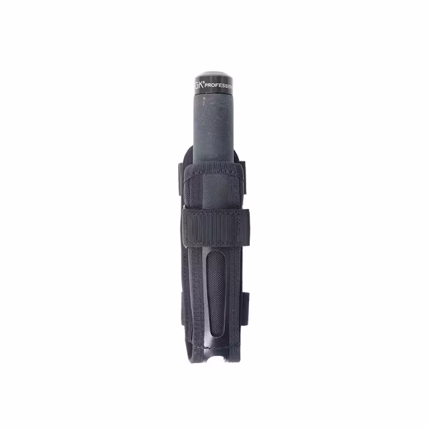 Batonghölster i kraftig nylon för dolt bärande av teleskopbatonger. Fästes horisontellt på ryggen vid midjan i civila bälten med upp till 50 mm bredd. Kan även bäras vertikalt i bältet som ett vanligt hölster. Höger-vänster utförande som medger snabbt och enkelt enhandsdrag.