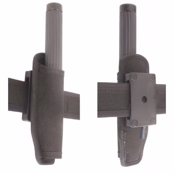 Teleskopbatong hållare som passar upp till 50 mm breda utrustningsbälten. Kan roteras 360 grader och bäras vertikalt som vågrätt efter bältet om man vill bära batongen dolt. Passar främst batonger av storlekarna 21" - 26" (50-60cm).