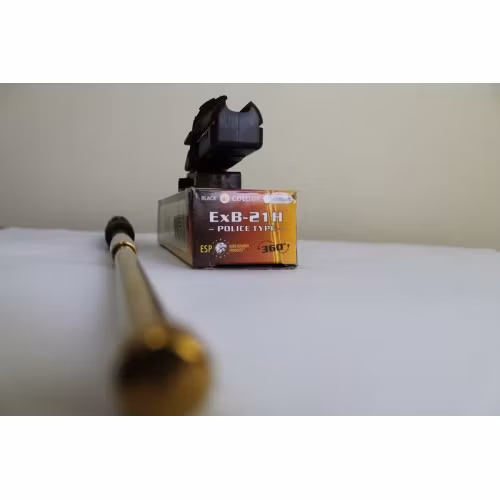 Hardened telescopic baton 21 inch long Friction Loc type by ESP. Professional revolving 360° Roto handle BH-54 with UBC-5 (Quick Change System) mount. The most popular model of baton with effective range, which is on uniformed services equipment in gold-plated version. Manufactured as individual equipment for officers of higher ranks and for parade and representative functions e.g. during appointment to a higher rank.