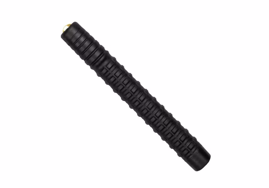 Räfflat gummihandtag som ger mycket säkert grepp. Smart 360graders justerbart hölster i svart polymer medföljer. Batongen kan hölstras i utfällt läge.