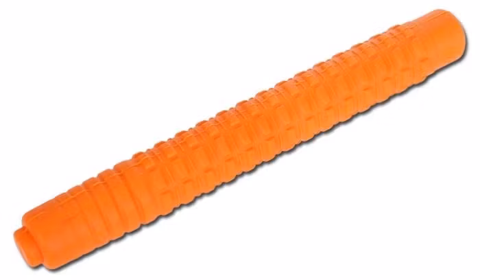 Denna batongen reducerar inte bara risken för skada vid kontakt p.g.a. dess gummilika (silikon) material. Dess färg i orange gör det också möjligt att på avstånd känna igen att det bara är ett träningshjälpmedel och inte en riktig batong.