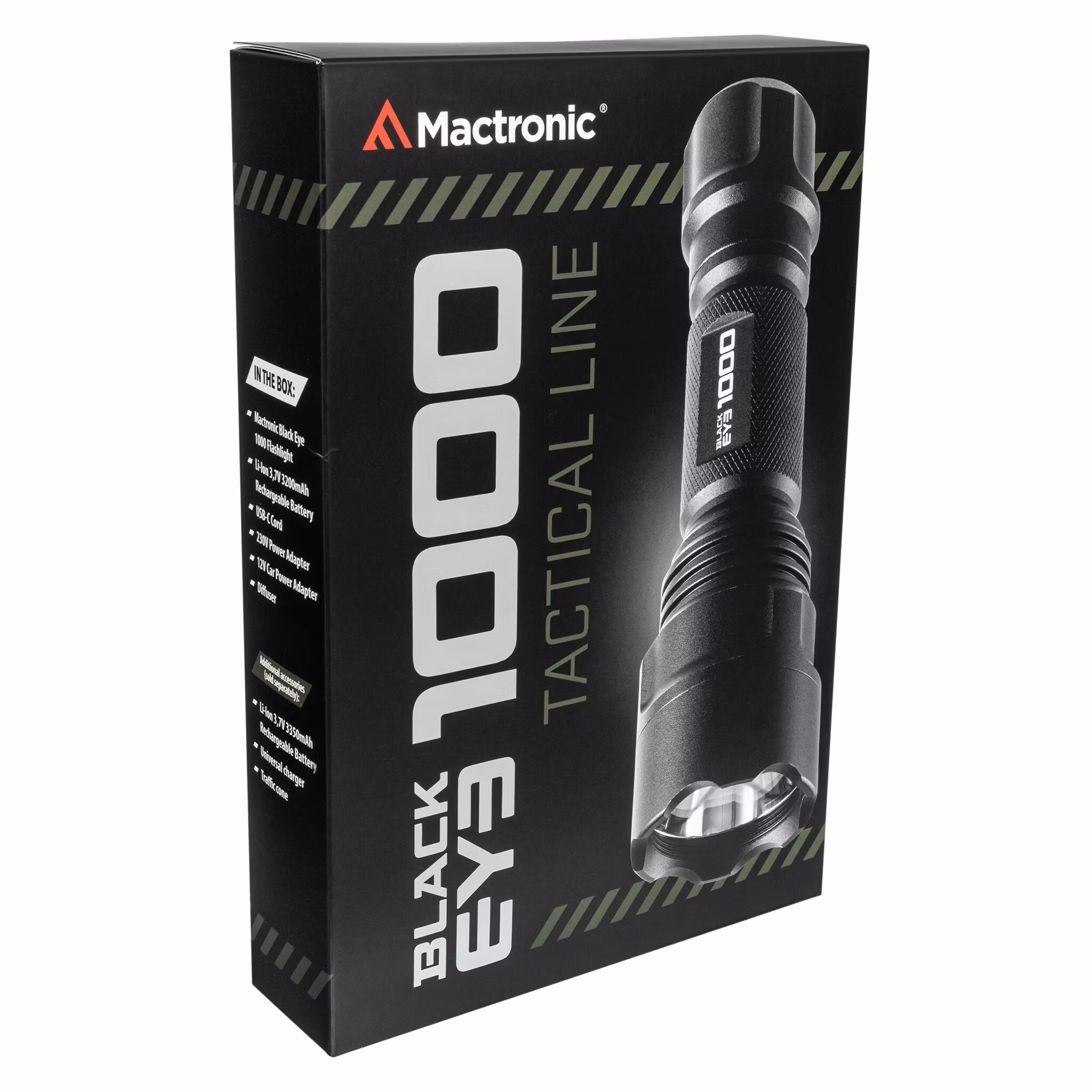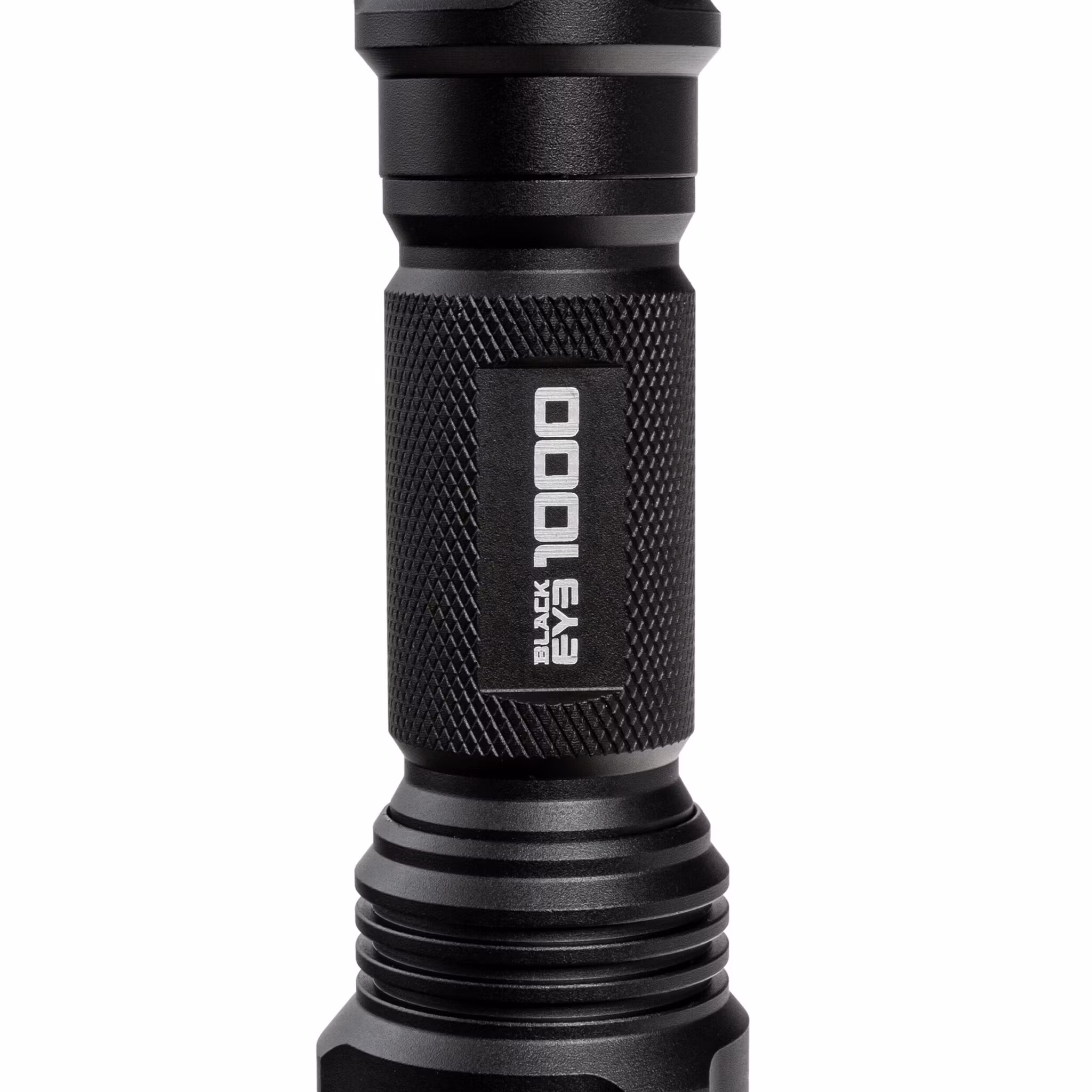 The Black Eye model can serve as tactical lighting with the use of an additional mount. The tactical reverse clicky switch allows for extinguishing with a light press and prevents accidental activation. The flashlight is powered by a 18650 Li-Ion 3.7 V battery with a capacity of 3200 mAh. Thanks to two included chargers, it can be charged from a traditional 230V socket or a 12V car outlet. Charging time with a network charger is 4.5 hours