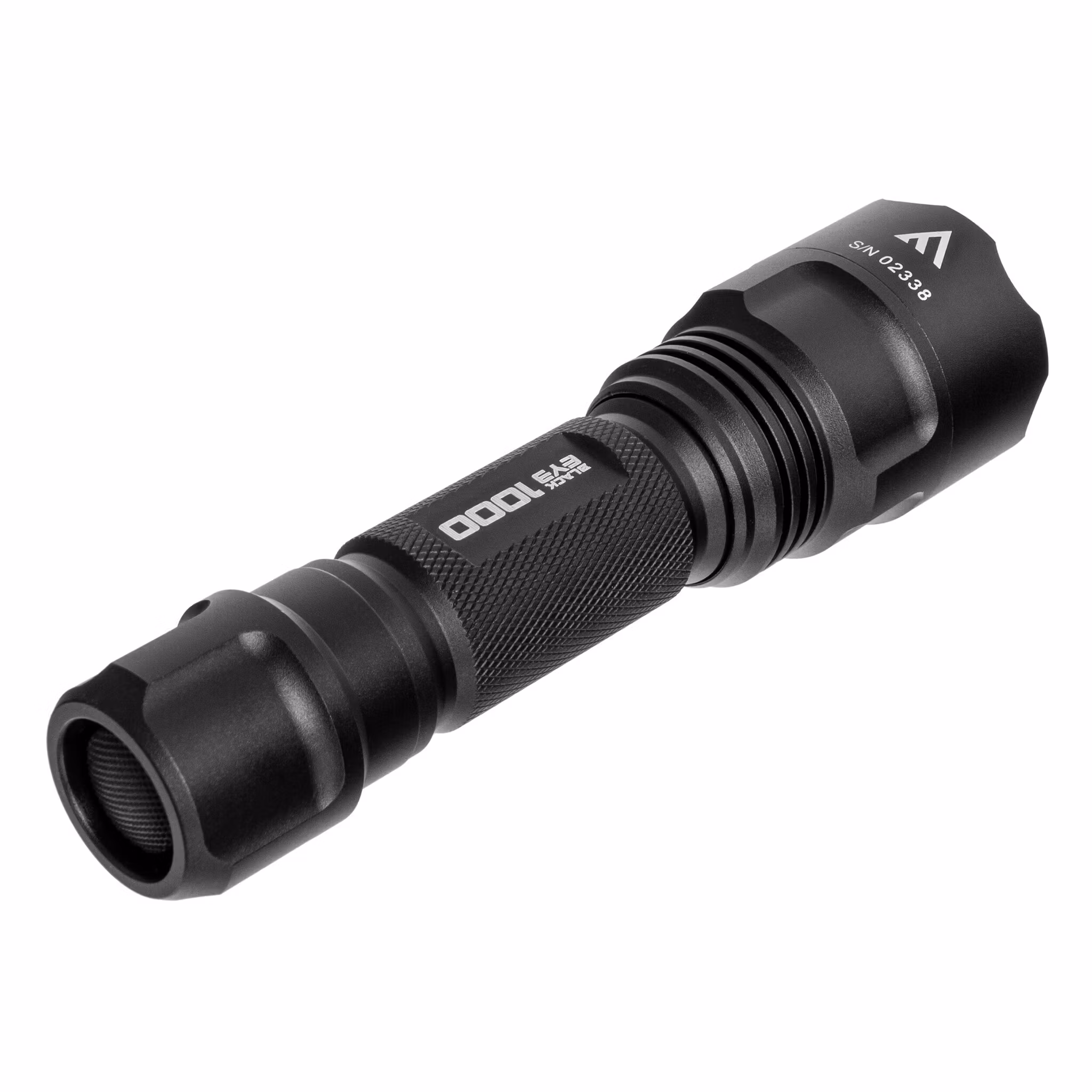 Handheld flashlight equipped with a diode Osram P9, which provides light with power up to 1000 lumens and a range of up to 286 meters. In the lowest mode (94 lumens) it can shine continuously for over 23 hours