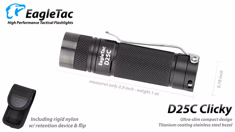 Specialutvecklad reflektor för CREE LED.Ljusstyrka upp till 436 lumens med endast 2 x AA (batteri medföljer ej). Titaniumkätt vändbart bältesclips ingår. Hölster och handlovsrem ingår.Taktisk strömbrytare och snabbjustering av 2 olika grupper av effektnivåer genom vridning av lamphuvud.Vattentålig enl. IPX8 max 2 m djup. Max ljusnivå 436 lumens med en räckvidd på upp till 130 m. Brinntid upp till 200 timmar.