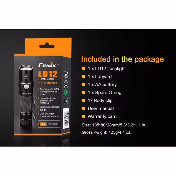 LD12 är mindre ficklampa med fyra olika effektlägen samt SOS och strobe funktion.