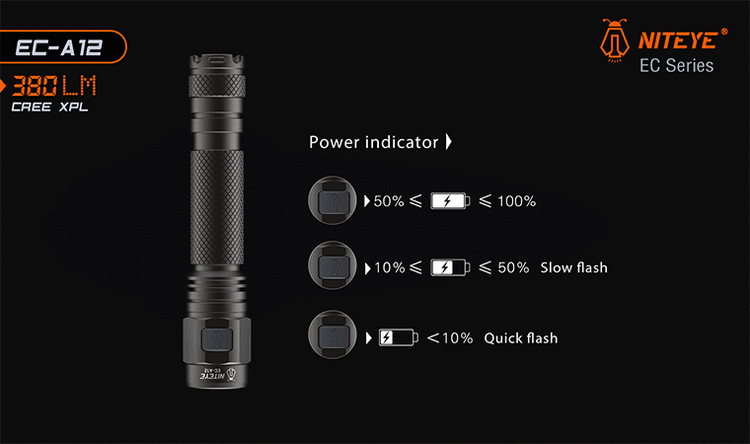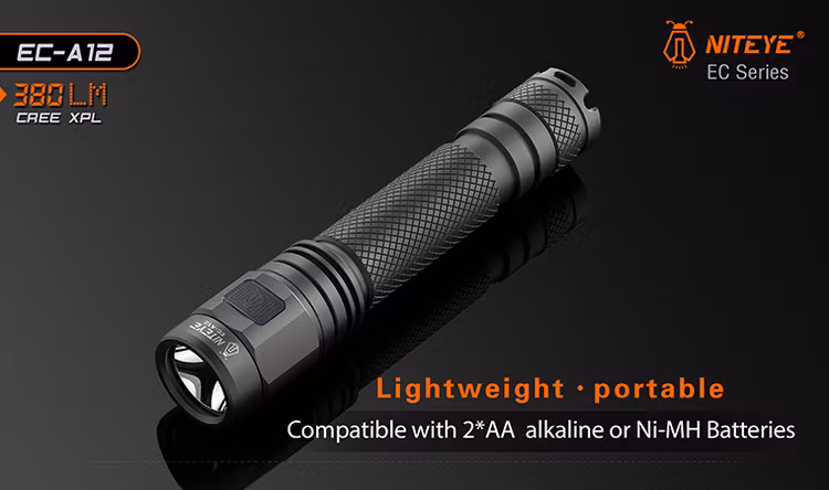 NITEYE Takisk ficklampa EC-A12 med 380 lumen. Hybrid. En ultrastark högeffekts CREE XP-L LED lampa i flygplansaluminium legering. Populär bland uniformspersonal!