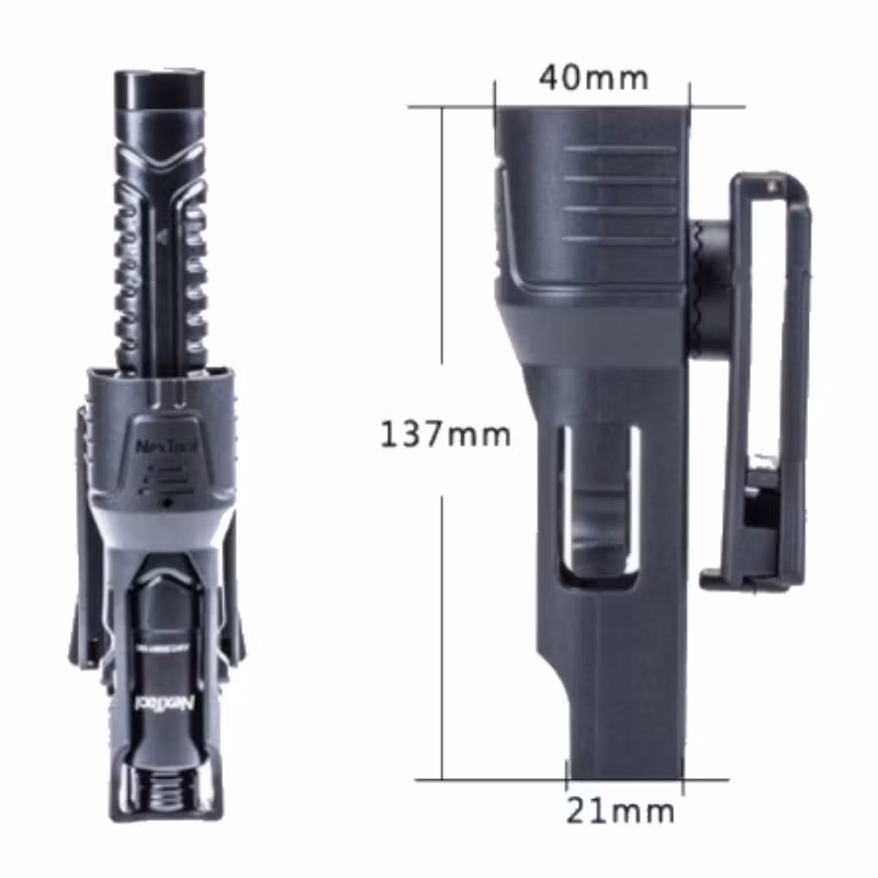 NEXTORCH KT5512 är en praktisk hållare som både kan fungera som batonghållare och ficklampshållare. Passar perfekt till teleskopbatonger i storleken 21”/20 cm.