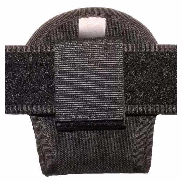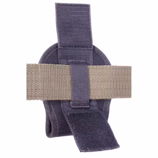 ett yttre fäste i kardborre för bälten som är 58 mm breda. När endast yttre fästet används kan du snabbt ta av handfängselfodralet utan att behöva ta av den från hela bältet.