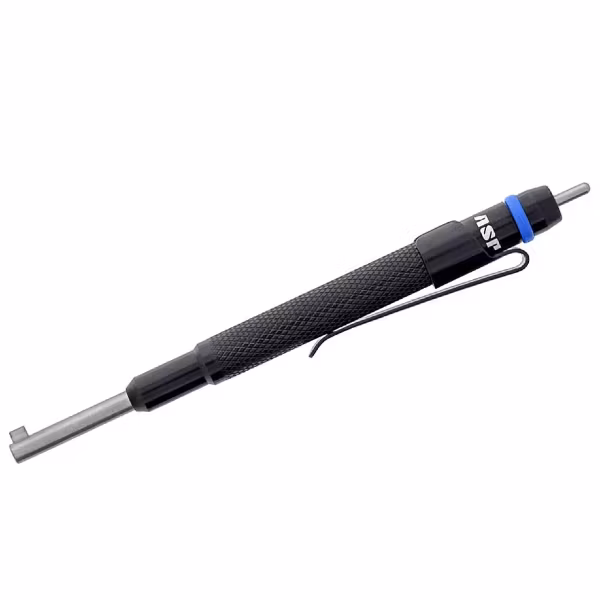 The Blue Line Clip Key is an extended design that facilitates easier access and operation of handcuff keyways. Its tough, knurled aluminum body and stainless steel shaft make it tough as nails, and a heavy-duty spring steel pocket clip ensures that it stays where you need it. ASP’s exclusive BackSet Flag provides rapid, precise keyhole location, and the other end of the barrel features a stainless steel double-lock pin.