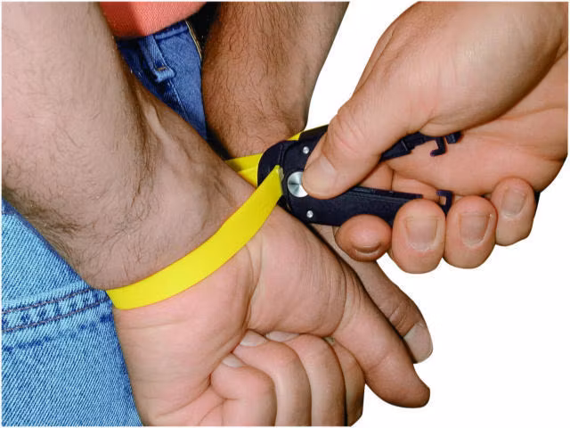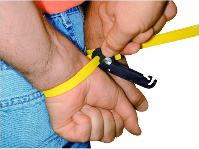 ASP’s Scarab skär enkelt och smidigt av buntbanden på ett vänligt sätt utan att på något sätt skada den fängslade.