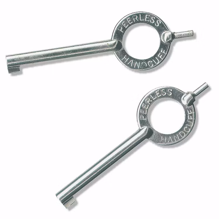 Enkla att använda för att snabbt fängsla en person. Två handfängselnycklar medföljer. Livstids garanti mot fabrikationsfel. Vikt: 284 gram Material/Finish: Kolstål/Nickel Öppning minimum: 51 mm Minsta innermått: 150 mm Maximalt yttermått: 211 mm Totallängd: 236 mm