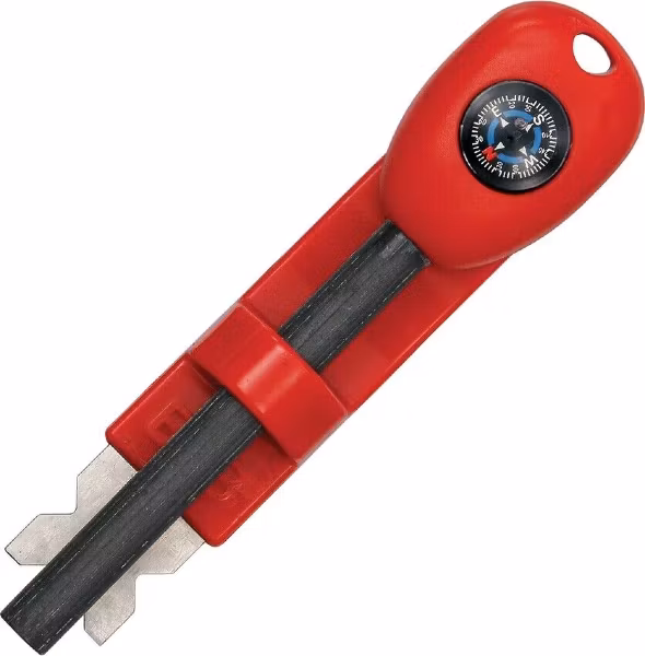 Det ursprungliga tändstålet har blivit ännu bättre. Denna nya konstruktioner är bekvämare och säkrare att använda. Den har en liten vätskefylld knappkompass i handtaget.