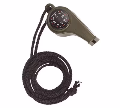Super visselpipa i militärstil med tre funktioner (Visselpipa, Kompass och Termometer).