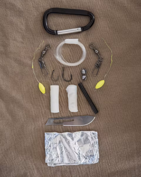 Utrustning för överlevnad i naturen med Mil-Tec Survival kit i 7 delar.