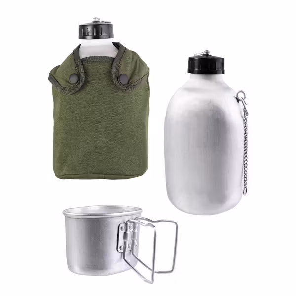 MIL-TEC Fransk Canteen Vattenflaska Alu 1,3L + kopp och fodral