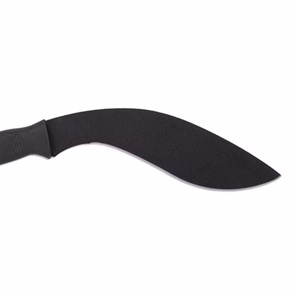 Formen på macheten är utformad efter den legendariska nepalesiska jakt- och stridskniven. Machetes av denna typ är perfekta för att röja buskar eller bygga ett läger. Bladet i rostfritt stål är täckt med en antireflekterande, matt beläggning, som också skyddar verktyget mot korrosion (rost). Det anatomiska handtaget är tillverkat av plast med en halkfri textur. Setet innehåller ett nitat fodral som kan fästas i ett bälte upp till 7 cm brett.