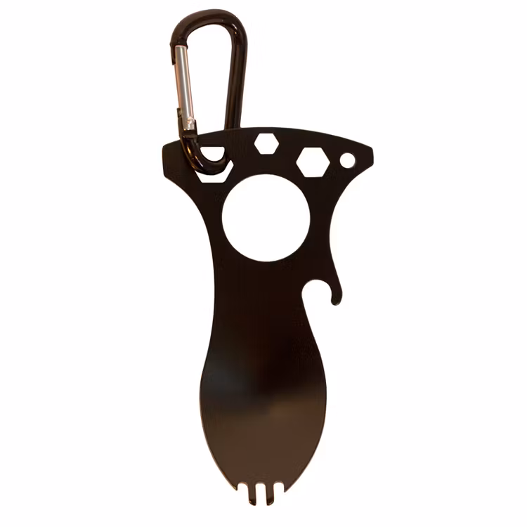 Men denna spork är även utrustad med en karbinhake samt en skruvmejsel.