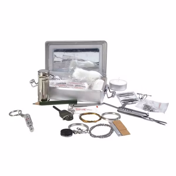 Alla nödvändigheter i en liten låda för en överlevnadssituation!