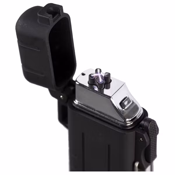 High-quality, rechargeable electronic lighter. Due to the arc, the lighter is weather insensitive and can also be used as a cigar lighter. The ribbed outer material lays good in the hand in any weather.
