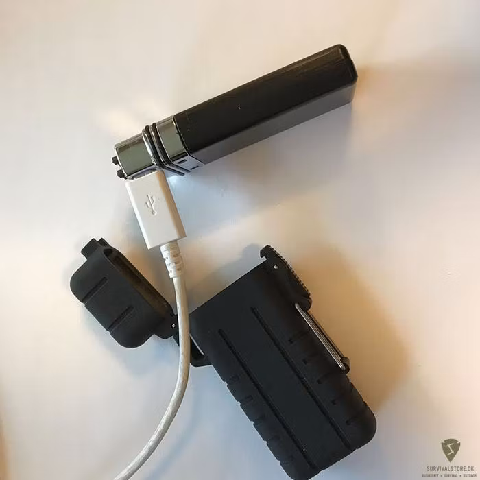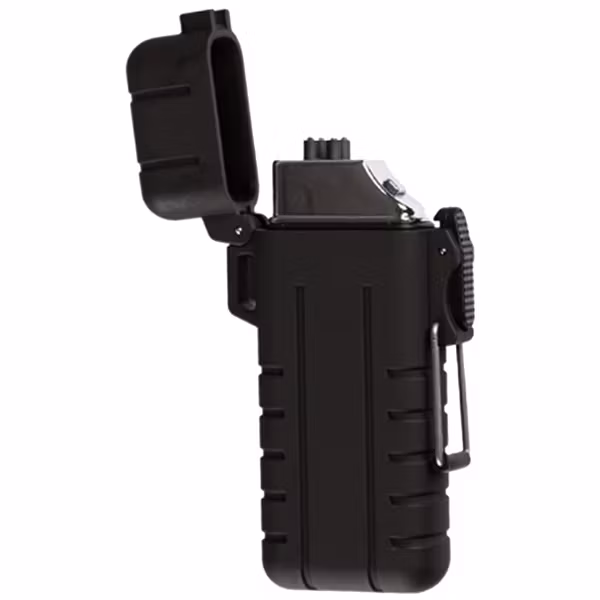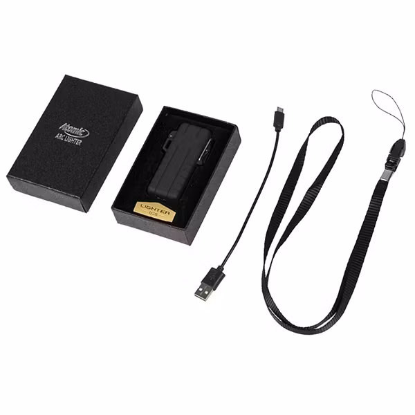 The lighter has two pairs of electrodes generating an electric arc. Relatively quiet operation for this type of device has a positive impact on the comfort of use. Charging takes place using the Micro USB port and the included cable. The packaging is equipped with a button-release closure and an additional lock. An ear integrated into the housing allows the lanyard to be interlaced.