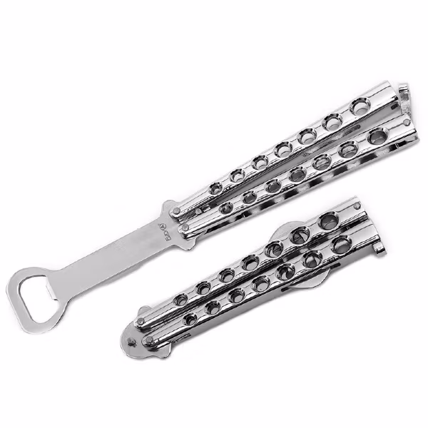 En originell flasköppnare som fungerar som butterfly Balisong kniv - för blixtsnabb flasköppning.