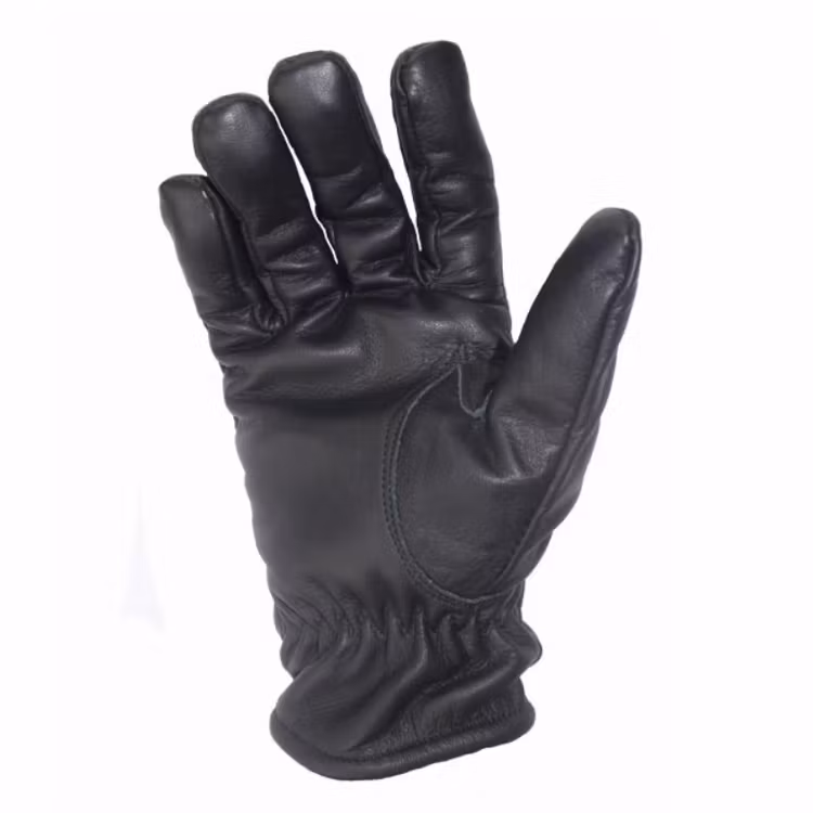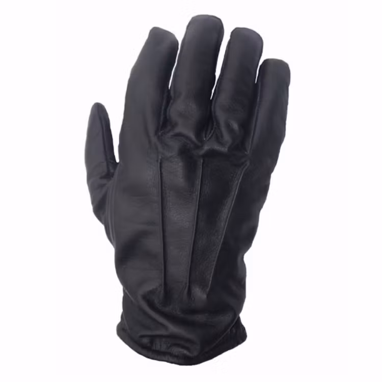 Handsken har ett innerskal av knivskyddande Kevlar samt ett ytterskal i skinn.