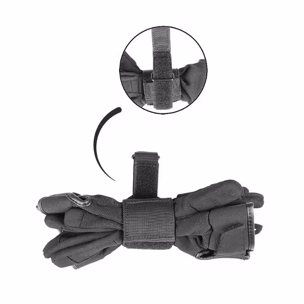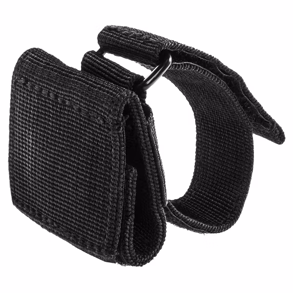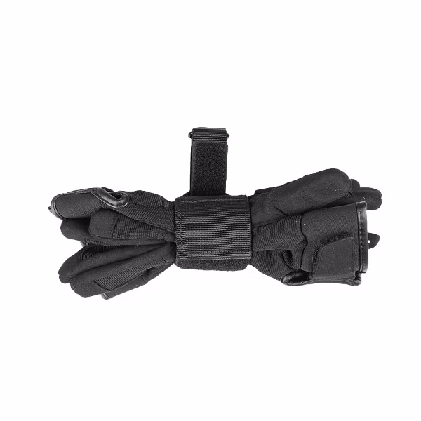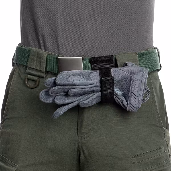 Glove holder allowing attachment of gloves to a belt up to 40 mm wide. Made of durable and abrasion-resistant polyester and equipped with two Velcro straps— one for attaching to the belt, the other for securing the gloves. The holder weighs approximately 30 g and has a design providing quick access to gloves in tactical or work conditions.