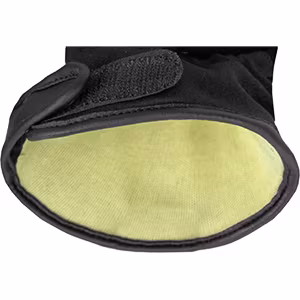 Skyddshandskarna är tillverkade av äkta läder och innerhanden på handskarna är av vildläder som ger ett mycket bra grepp, exempel runt en batong eller ficklampa. Handskarna har kardborreknäppning runt handleden för bästa passform.