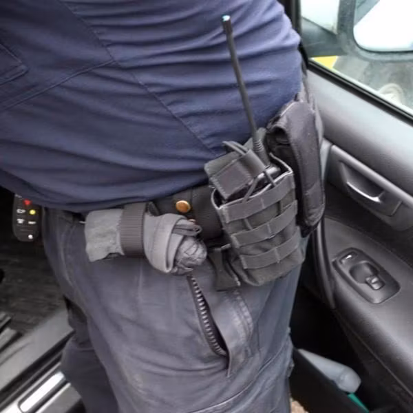 Hållaren sitter säkert på bältet. Handskarna sitter säkert i hållaren men du kan dra dem ut blixtsnabbt i en situation!