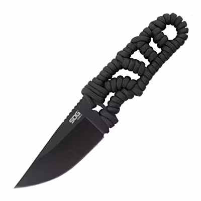 Taktisk EDC-kniv med drop point-profil. Knivskaftet är lindat med fallskärmslina (paracord). Bladryggen är försedd med skåror för att ge precision vid arbeten. Kniven levereras med ett fodral i gjuten nylon samt med halskedja. Pålitlig kvalitetskniv från amerikanska SOG Knives & Tools.