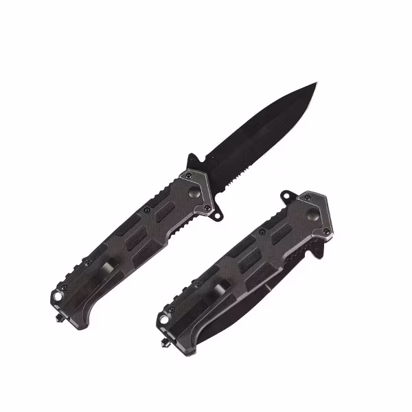 Glassfiberförstärkt nylonhandtag (G10) med spear point-blad. Blad av 440-stål.