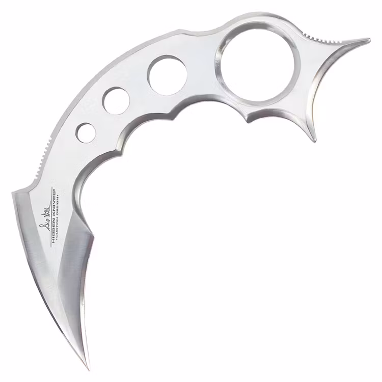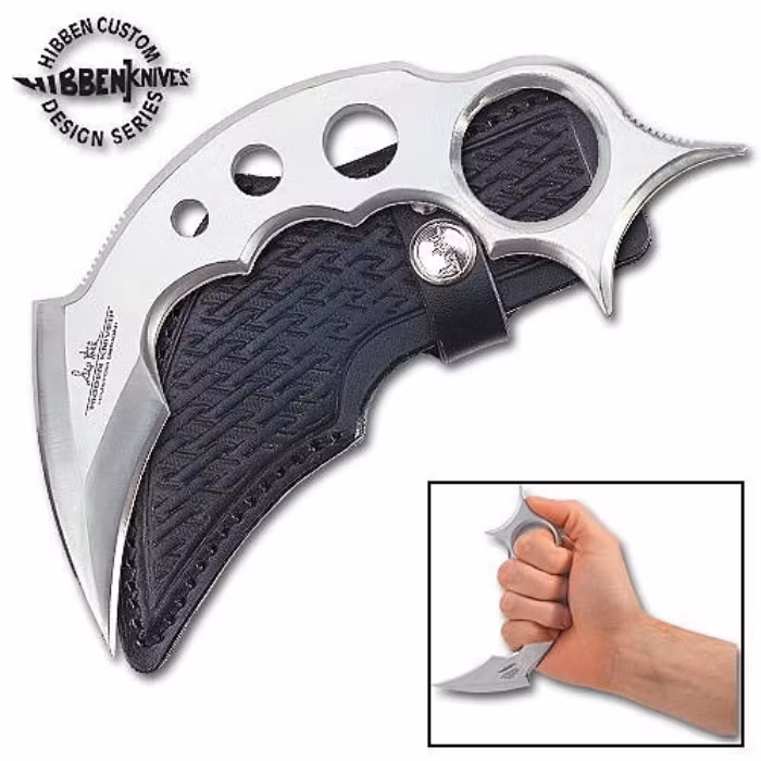 A great version of the popular Hibben Claw knife , the 2028 features the unusual grip design that allows it to be held in two positions, plus thumb grooves in the design to allow for extra gripping. 6" overall it has a 420-J2 stainless blade that is 2-3/4" long and 3/16" thick. Includes a premium quality, genuine leather sheath with stainless boot clip.