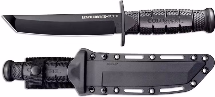Leatherneck Tanto är en militärkniv med svart tantoblad från Cold Steel. Bladet är tillverkat i eggbeständigt Tyskt D2 stål. Knivskaftet är greppvänligt och halksäkert.