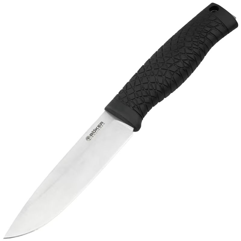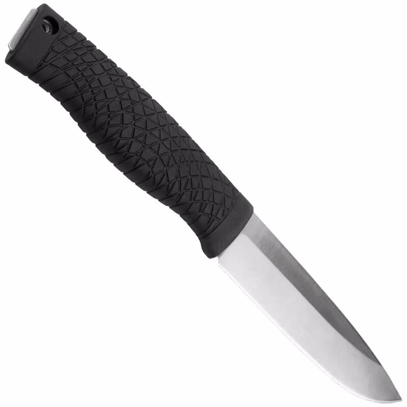 Durable outdoor-survival Full Tang knife with a handle formed on the long and wide tang of the blade