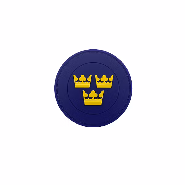 En snygg och stilrent PVC 3D Svensk gummi märke med tre kronor, med kardborre på baksidan.