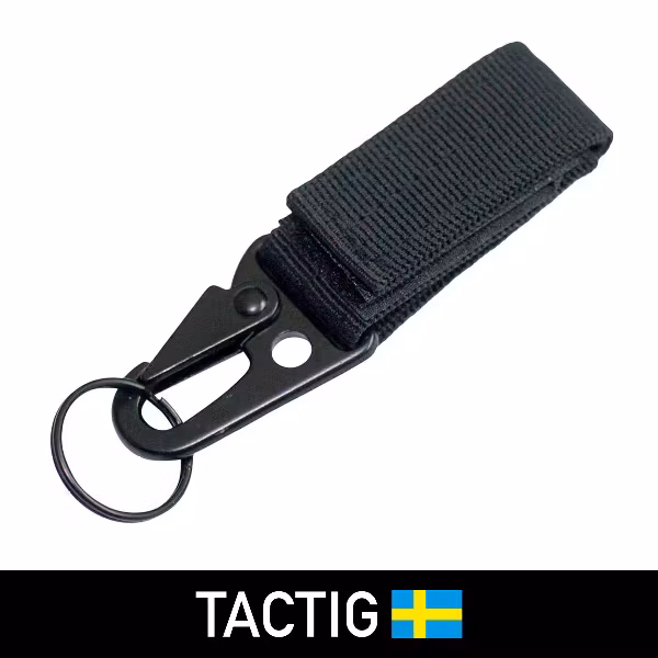 Klassisk nyckelhållare från Tactig i metall och kraftig cordura. Fästes med kardborre i bältet. Nyckelring medföljer.