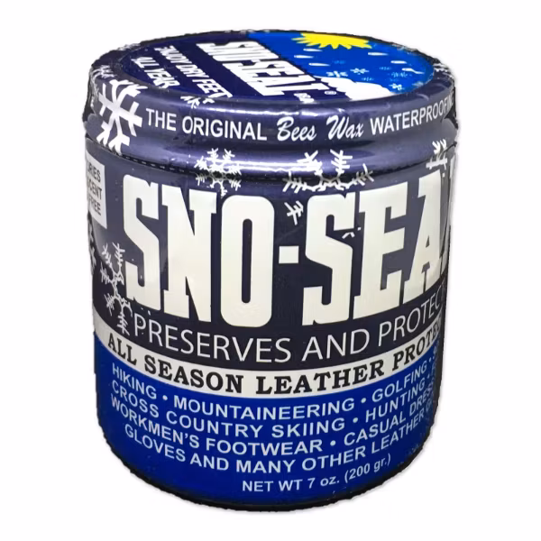 Sno-Seal är ett välbeprövat bivax från Atsko, anpassat för att skydda dina kläder mot regn, sol, snö och salt. Det är också perfekt för vaxad bomull och tältfogar. Bivaxformeln torkar till ett fast vax som "stannar" i läderytan så att det håller längre. Andra bivax med fett, olja och animaliska produkter kan migrera genom lädret tills de täpper igenom alla porer. Dessa vattentätningsprodukter fyller de naturliga utrymmena som ska absorbera svett och isolera. Sno-Seal kan användas på Gore-Tex® eftersom det gör att fukt fortfarande ventileras ut från skon då vaxet stannar på ytan.