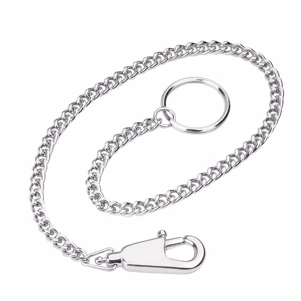 Chain with a carabiner and key ring. Made of steel/zink. The carabiner can be attached to the belt loop of the trousers. The length of the chain allows you to carry the equipment inside the pockets of cargo pants.