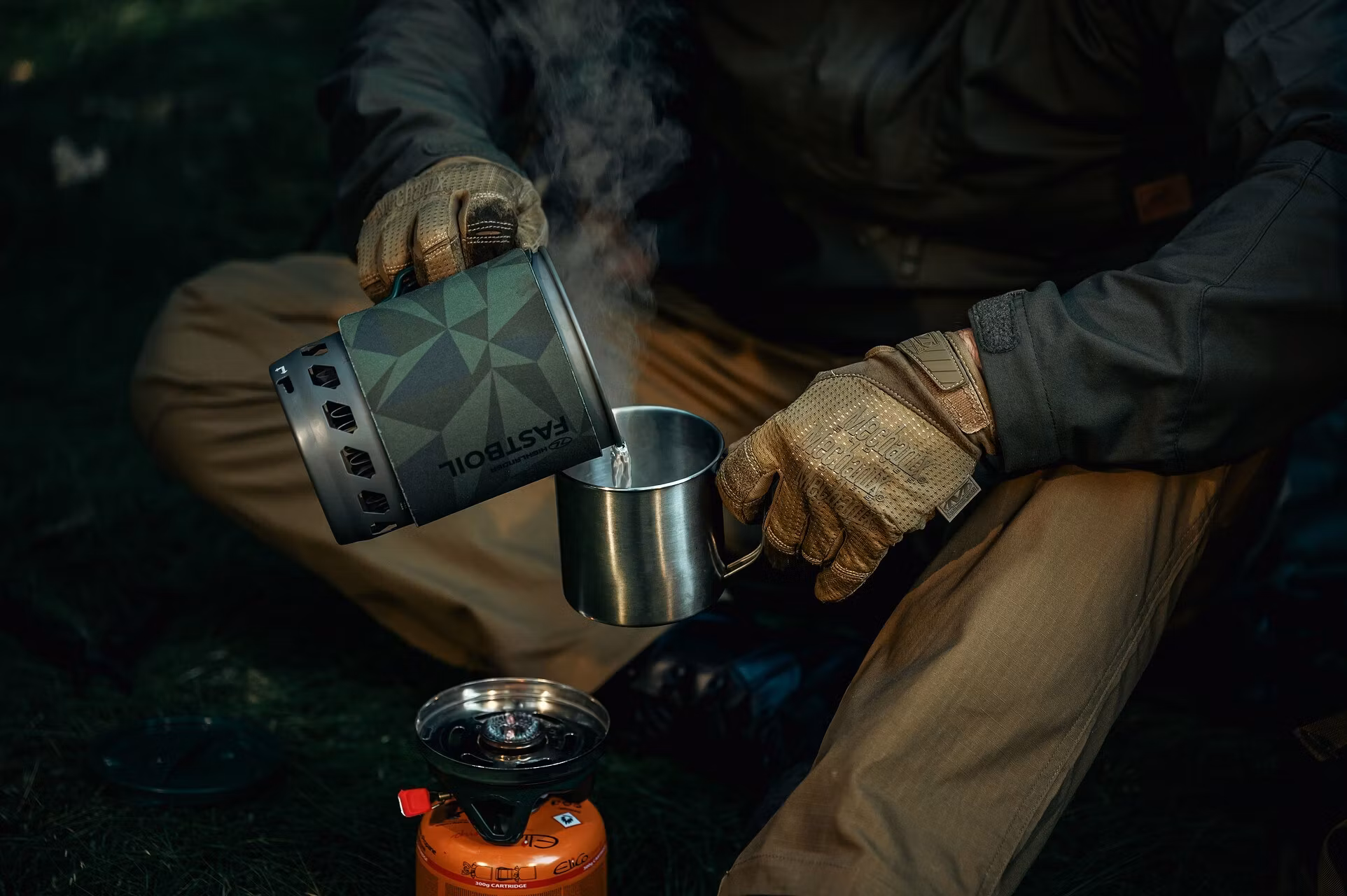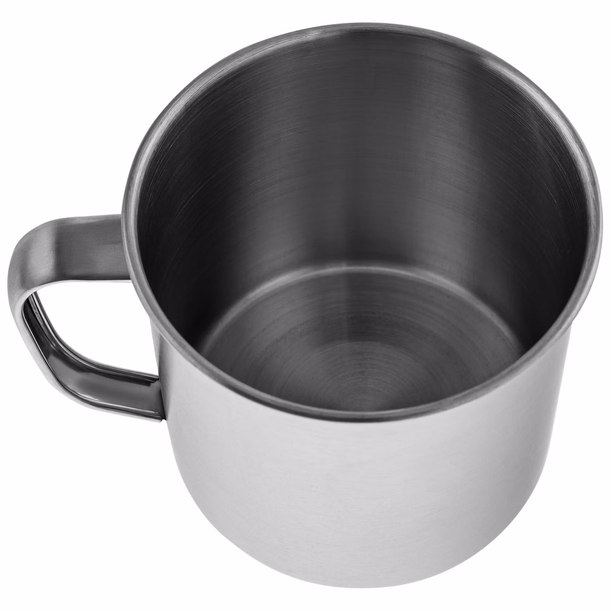A travel mug in silver color with a capacity of 500 ml. Made of stainless steel, allowing liquids to be heated directly over an open flame while ensuring high durability. The damage-resistant construction makes it an excellent choice for activities such as hiking and survival.