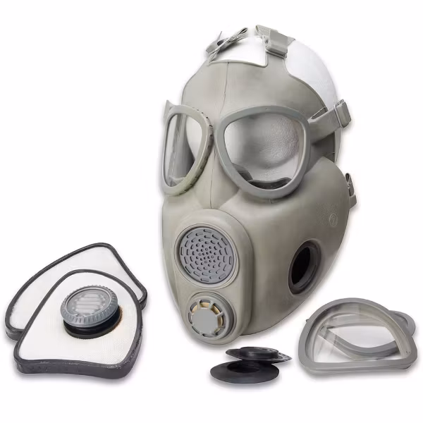 The  M10 gas mask helps to protect the face, eyes and respiratory system against chemicals and radioactive and biological warfare agents that are used in the form of gases, vapors, aerosols, etc. Includes spare goggles and filter. Note: Though these gas masks and filters may function as intended, they have likely exceeded their expiration dates and should be used at your own risk.